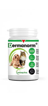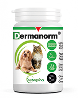 Poznaj Dermanorm® – preparat dla psów i kotów zmagających się ze słabej jakości okrywą włosową i wysuszoną, podrażnioną, łuszczącą się skórą. Idealny balans pomiędzy nienasyconymi kwasami omega-3 i omega-6 zapewnia odpowiednią ich ilość do odbudowania zniszczonej skóry oraz wzmocnienia sierści.
