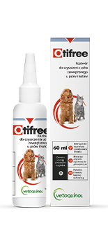 Poznaj roztwór do czyszczenia uszu Otifree, który intensywnie oczyszcza z woskowiny i brudu, nawilża i tworzy barierę ochronną. Dzięki temu Twój pupil będzie czuł się komfortowo.